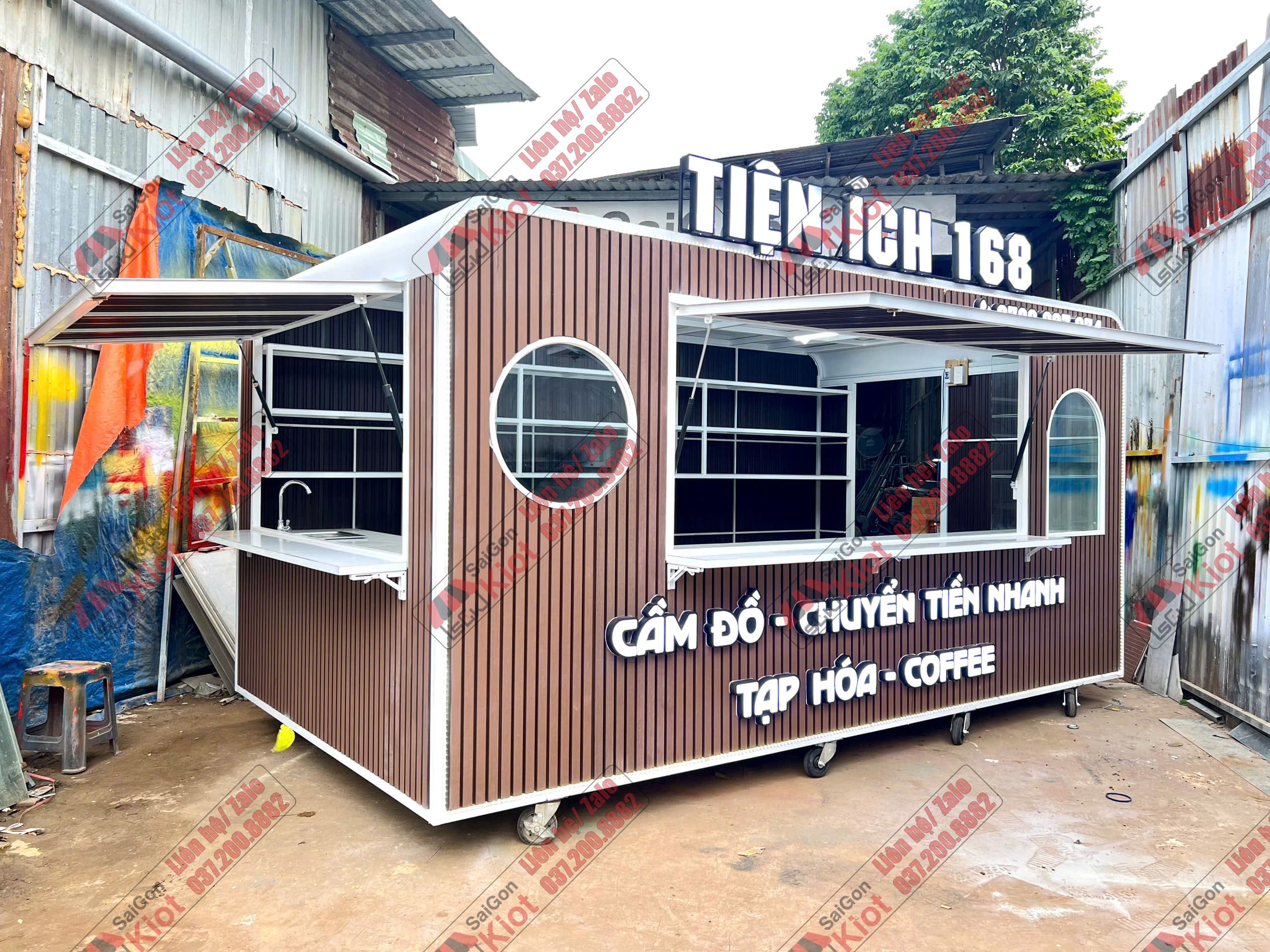 – Ngang 4m50– Rộng 2m50 – Cao 2m20 (cả bánh xe chưa tính bảng hiệu)