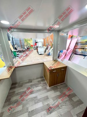 – Sàn cemboard trải tấm simili vân gỗ.