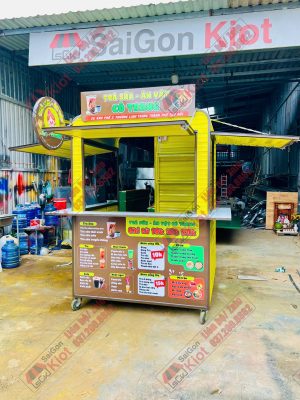 Kiot bán trà sữa, ăn vặt màu vàng chanh bắt mắt