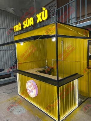 – Kích thước: ngang 1m80, cao 2m15, rộng 1m40 (2 người đứng bán)