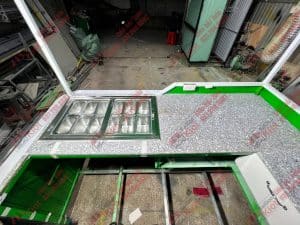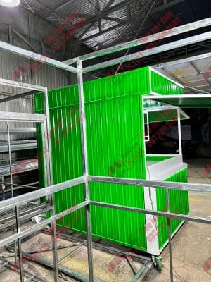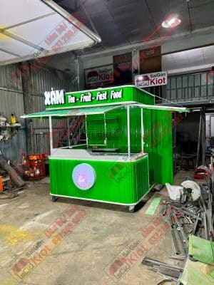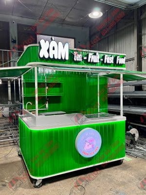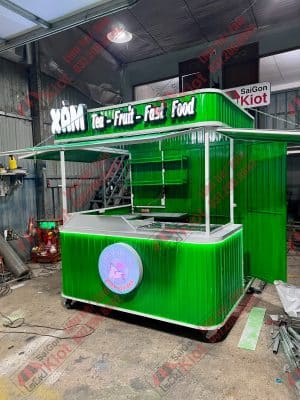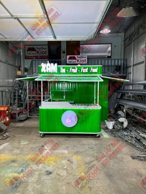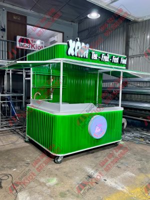 Kiot bán trà sữa, màu xanh nổi bật cho khách hàng ở Bình Chánh