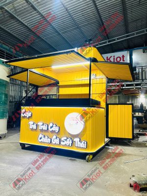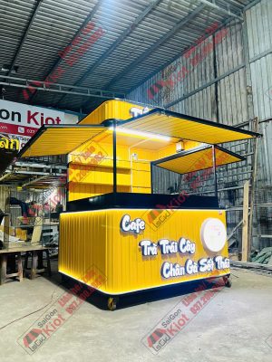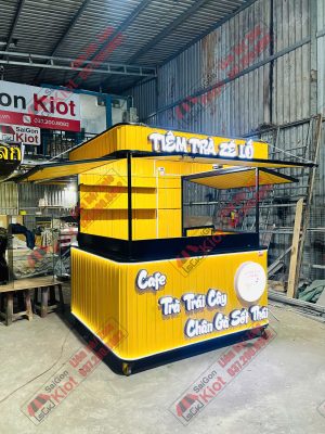 Kiot bán trà sữa, trà trái cây màu vàng bắt mắt