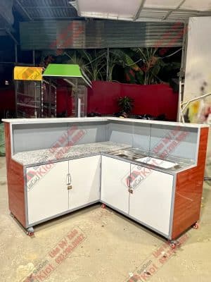 – Thân quầy được ốp alu, dán decal giả gỗ tinh tế