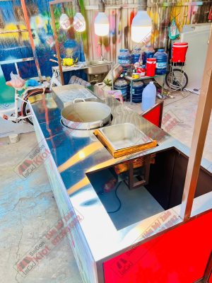 – Mặt bàn Inox 304 cao cấp, có khoang nồi nấu và khay topping