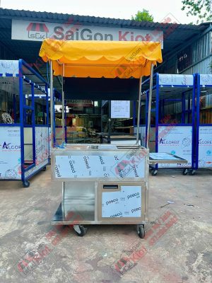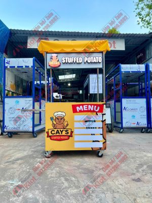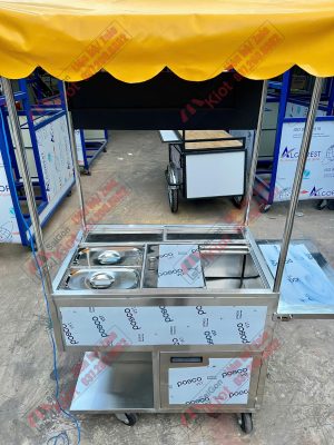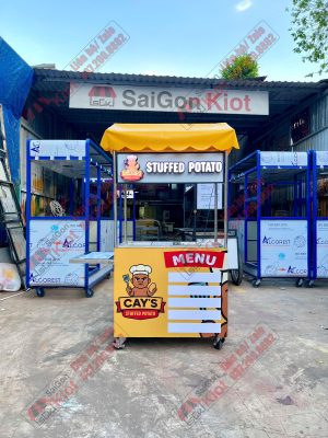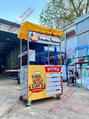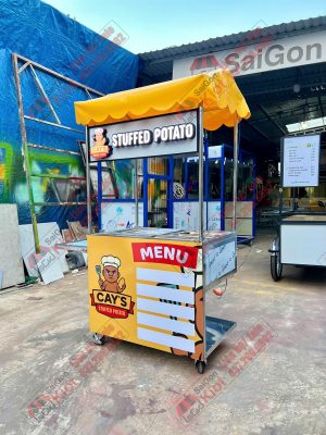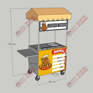 Xe đẩy bán bánh khoai tây nhồi bằng inox kích thước nhỏ gọn