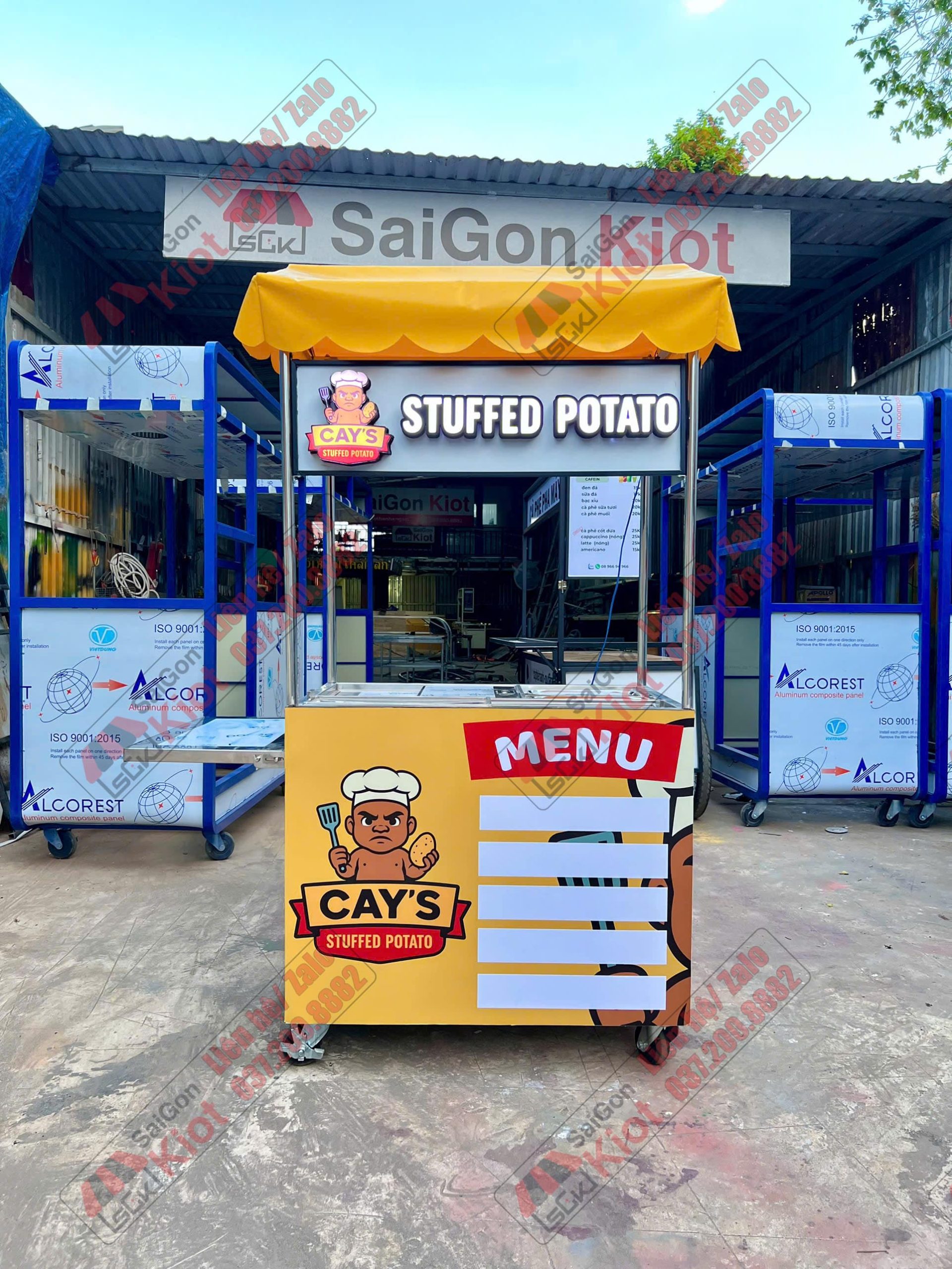 Xe đẩy bán bánh khoai tây nhồi bằng inox kích thước nhỏ gọn