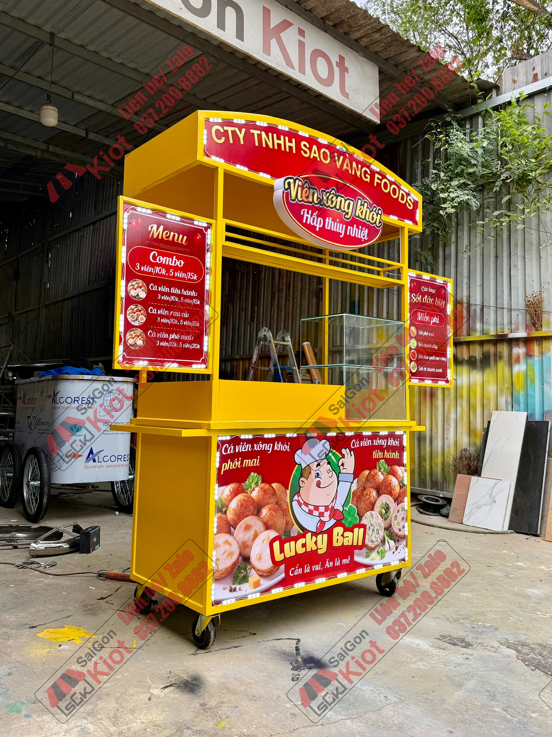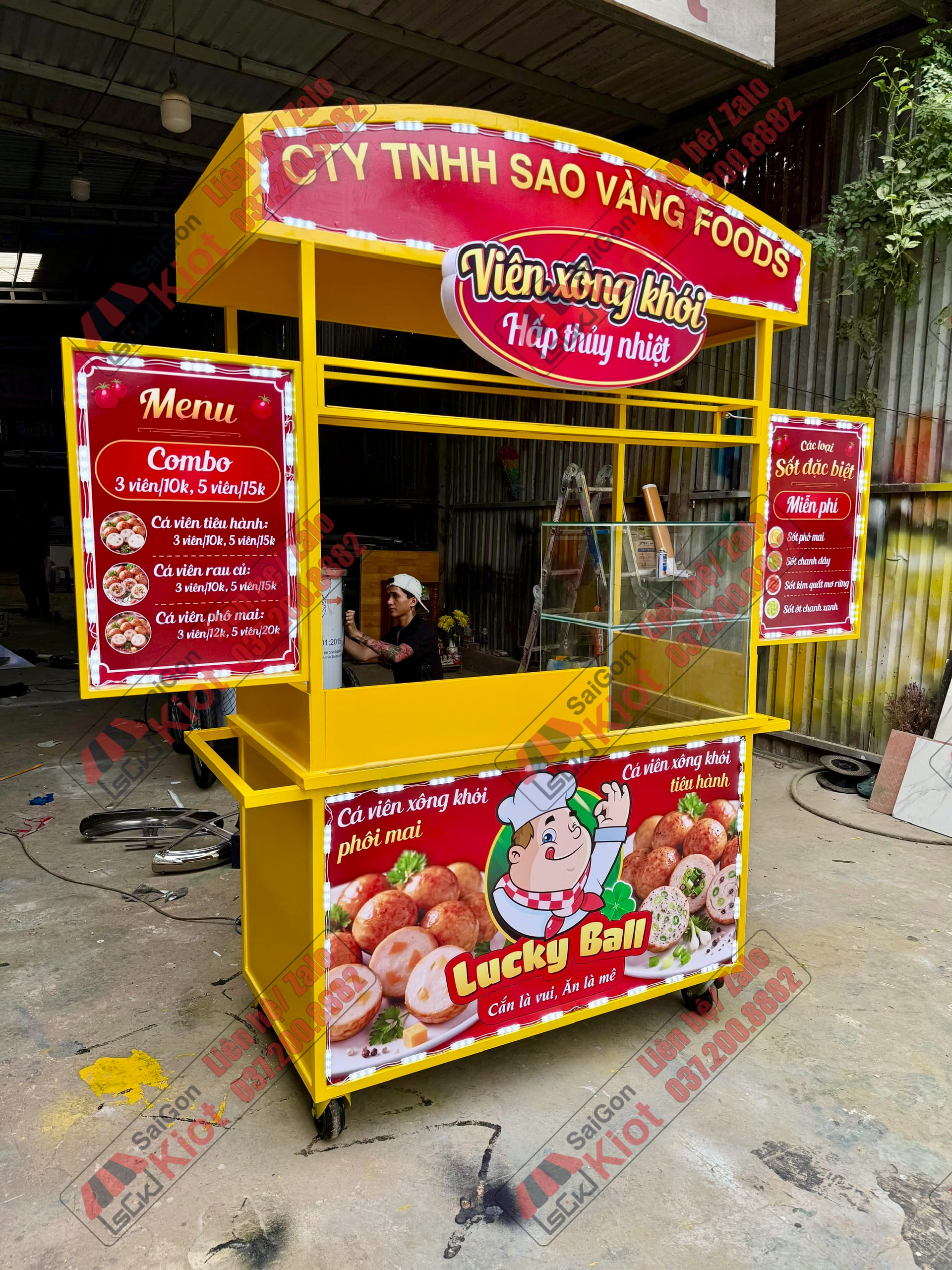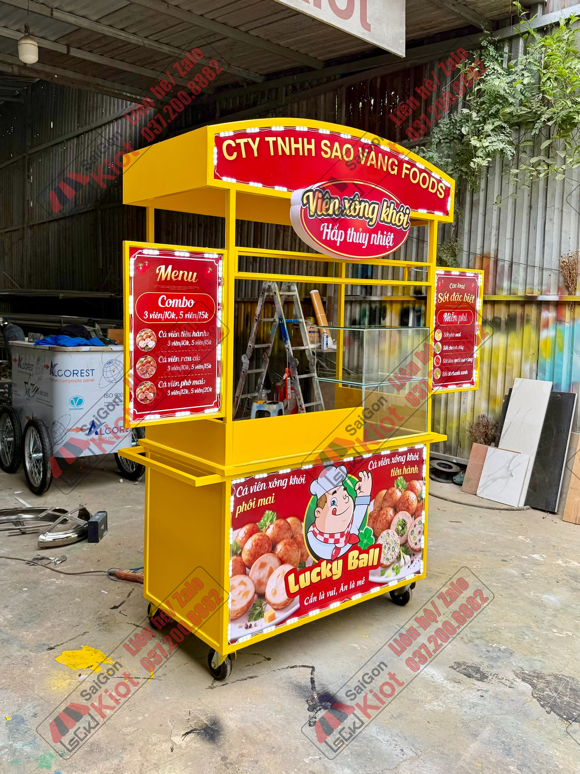 Xe đẩy bán cá viên thiết kế tông màu đỏ nổi bật