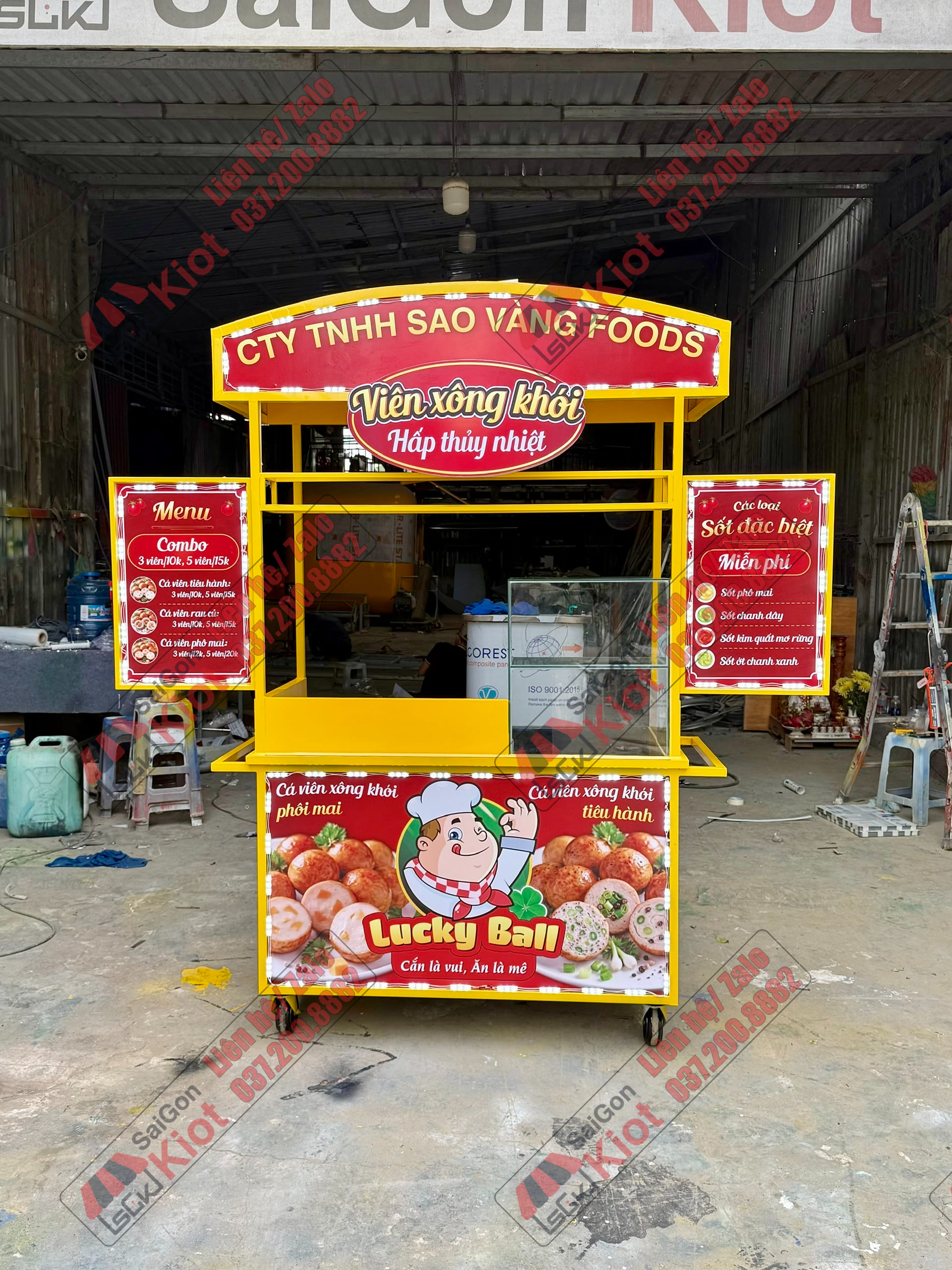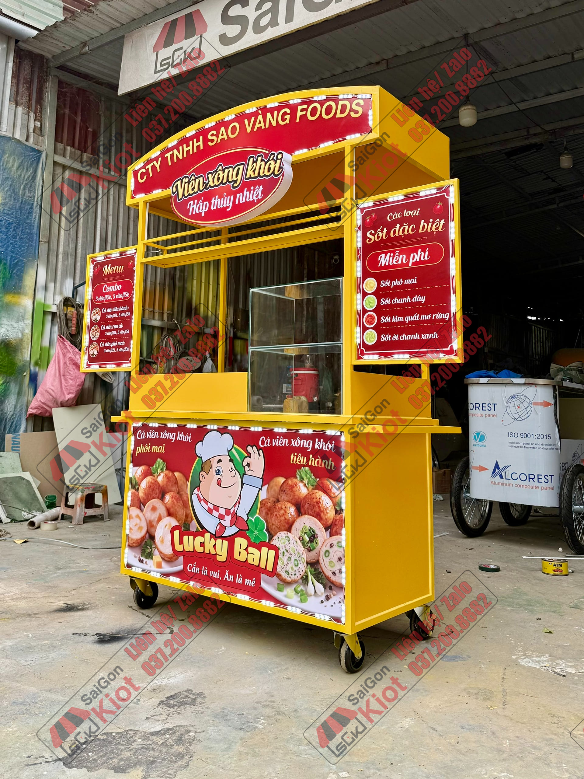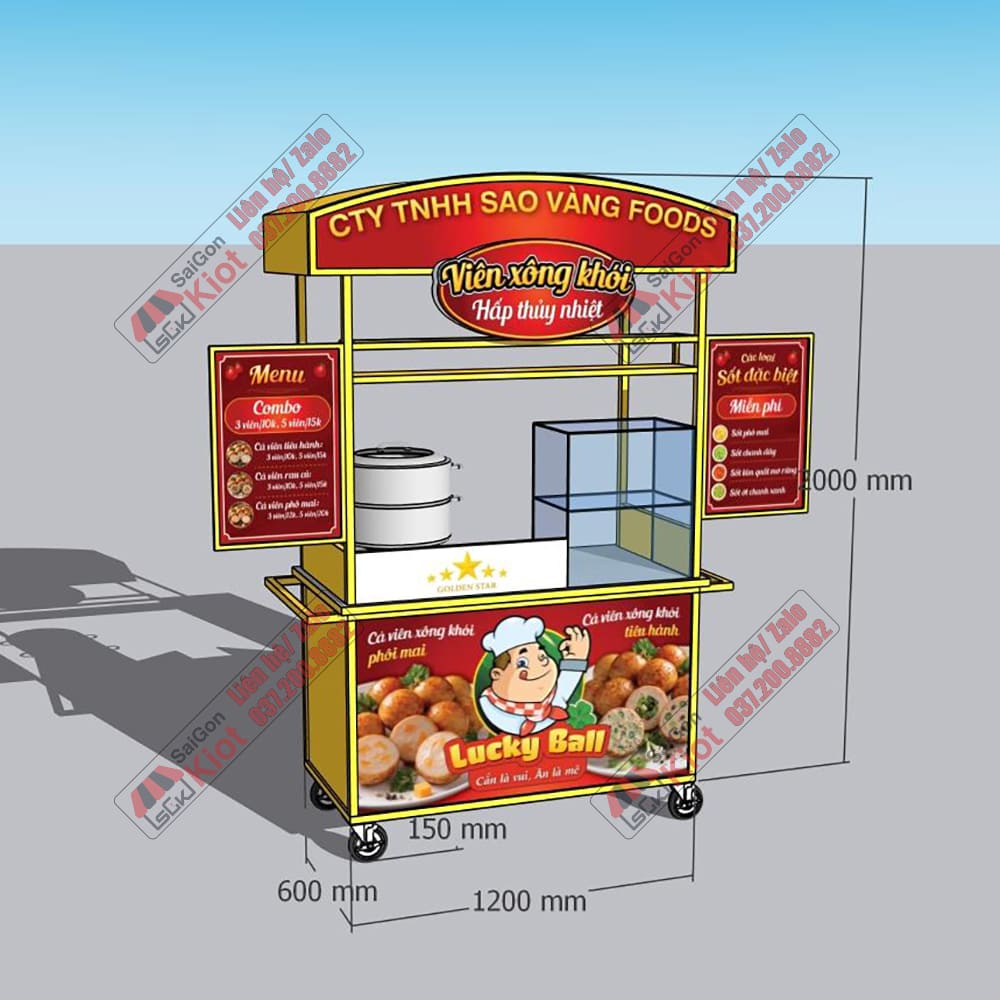 Xe đẩy bán cá viên thiết kế tông màu đỏ nổi bật