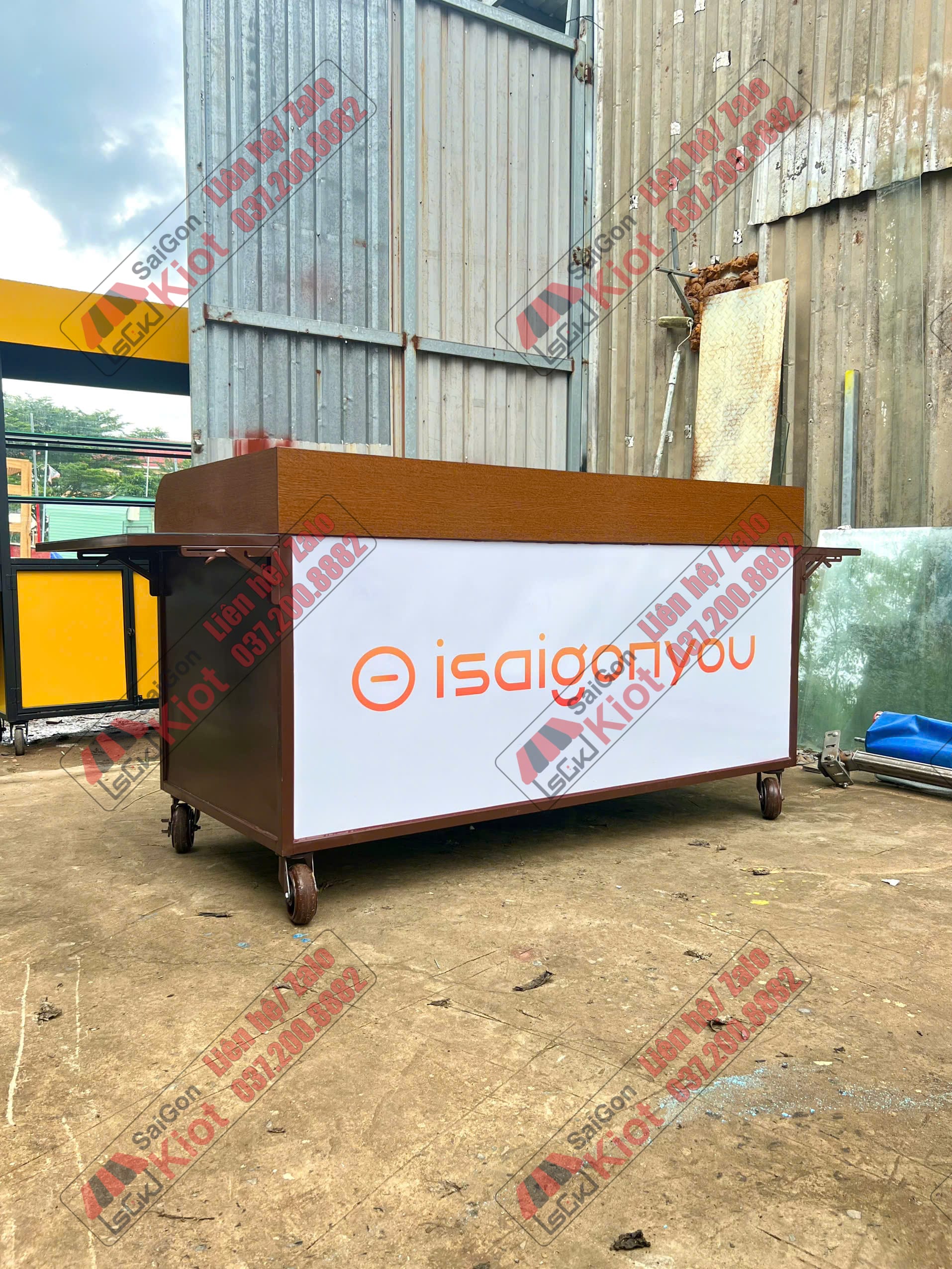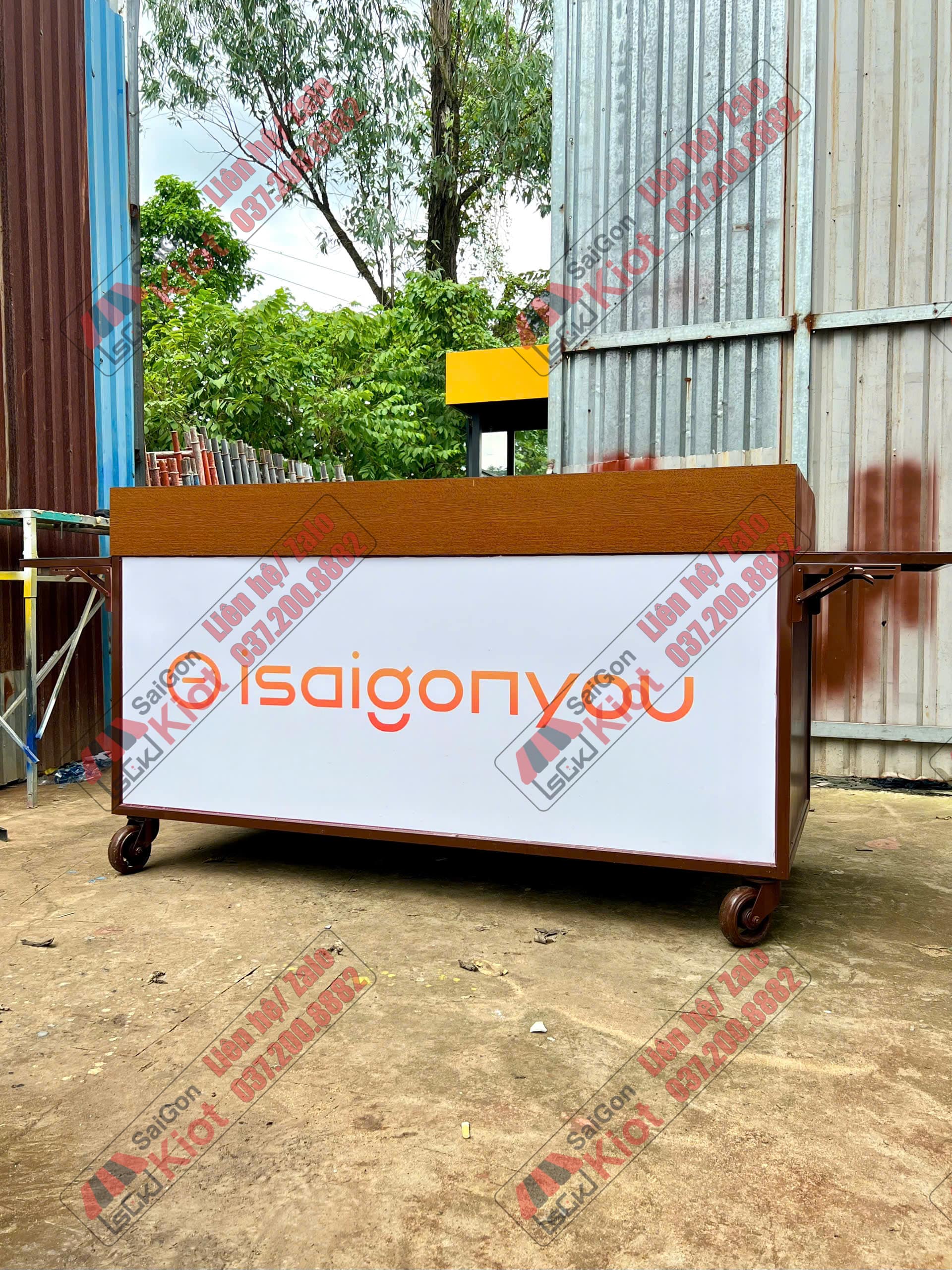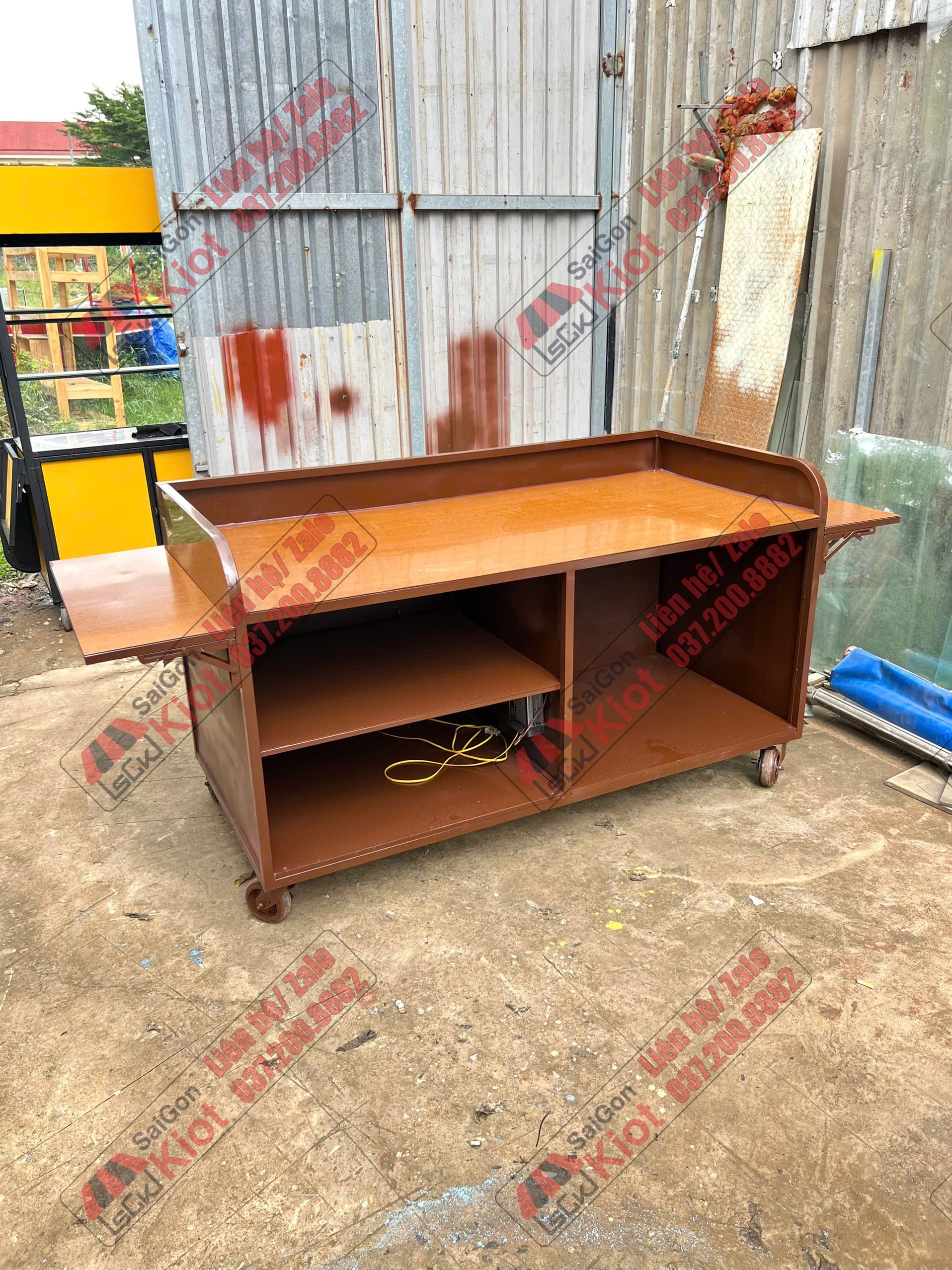 Xe đẩy bán cà phê thiết kế vân gỗ cá tính