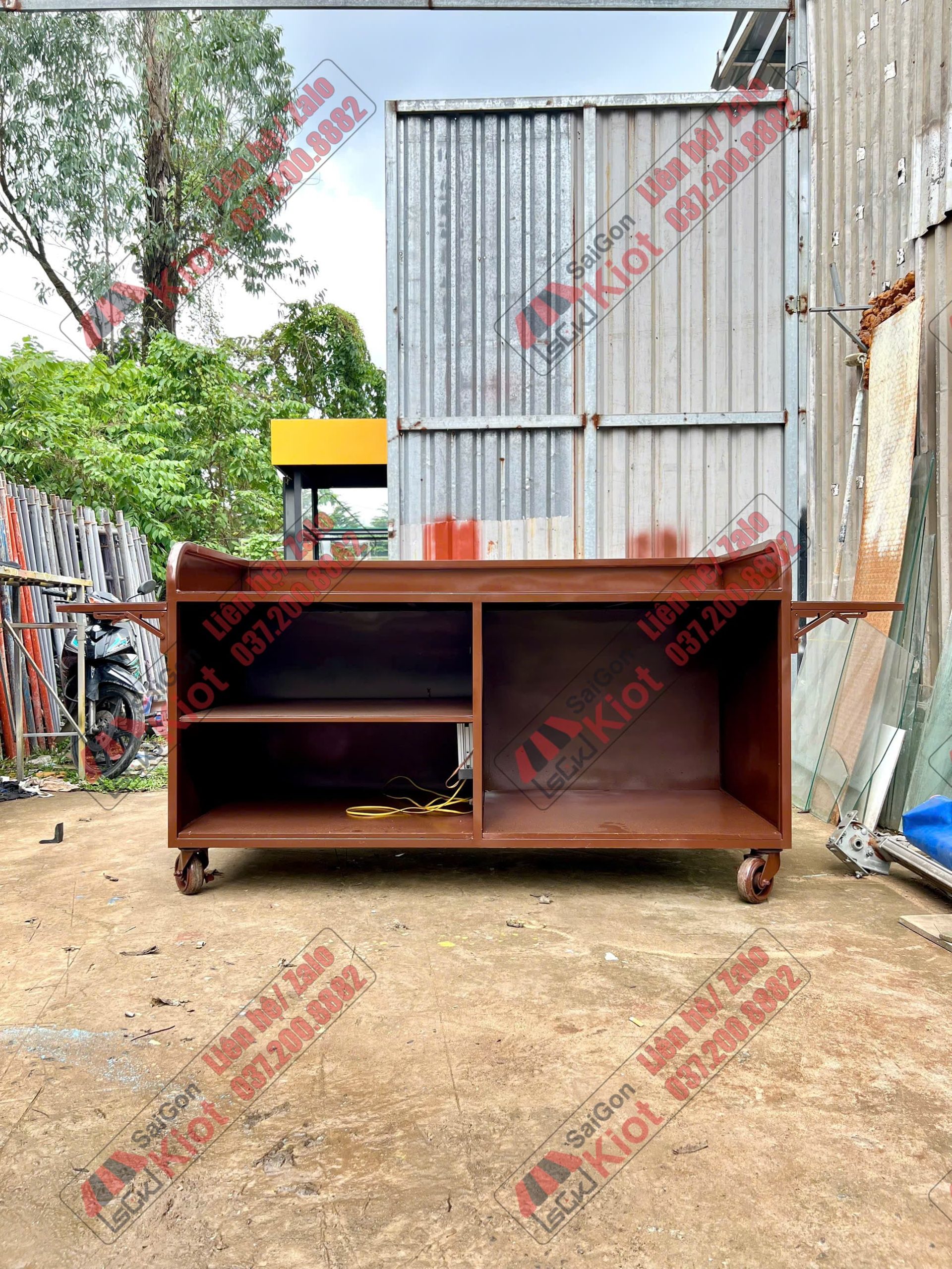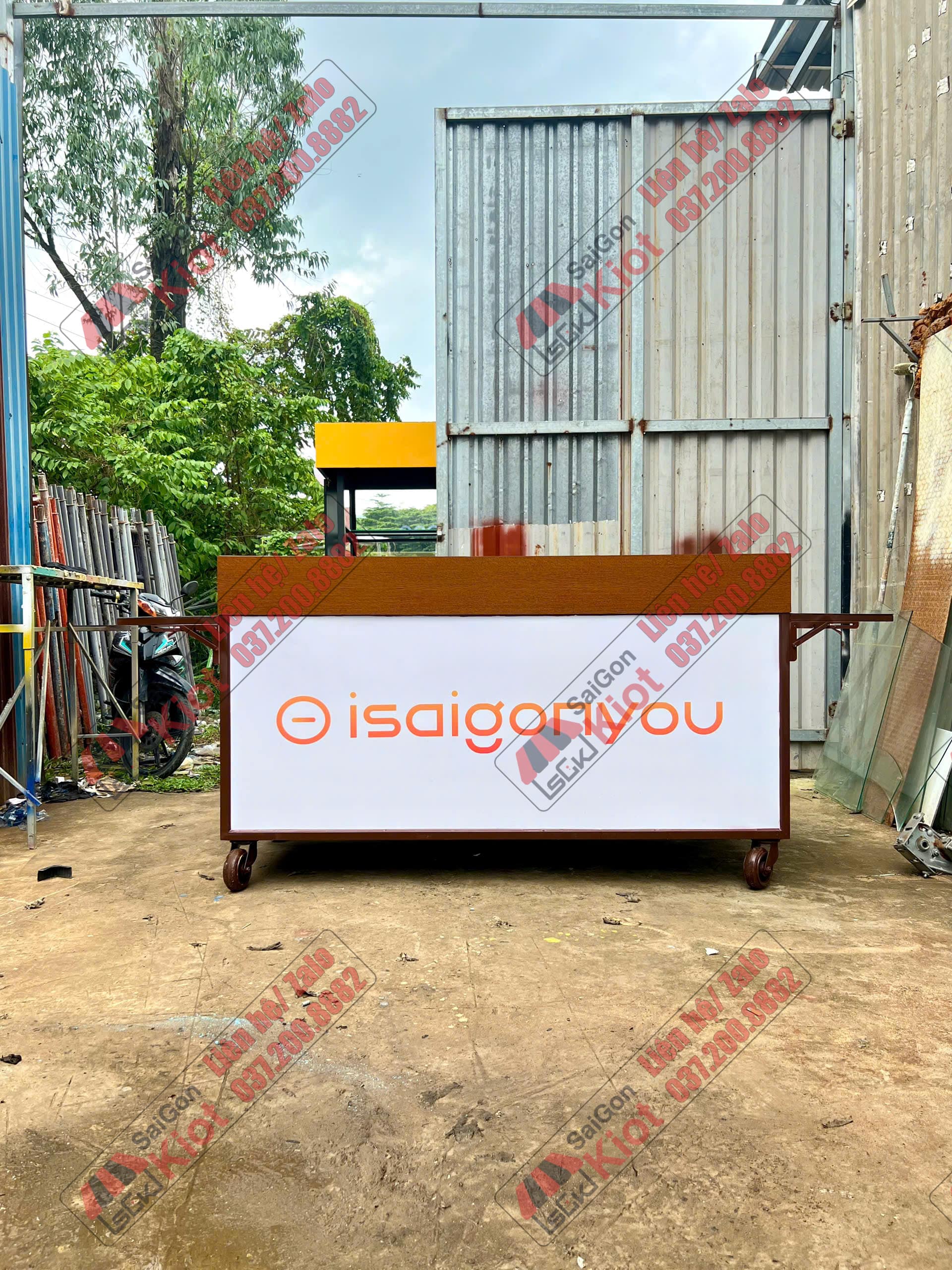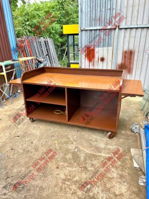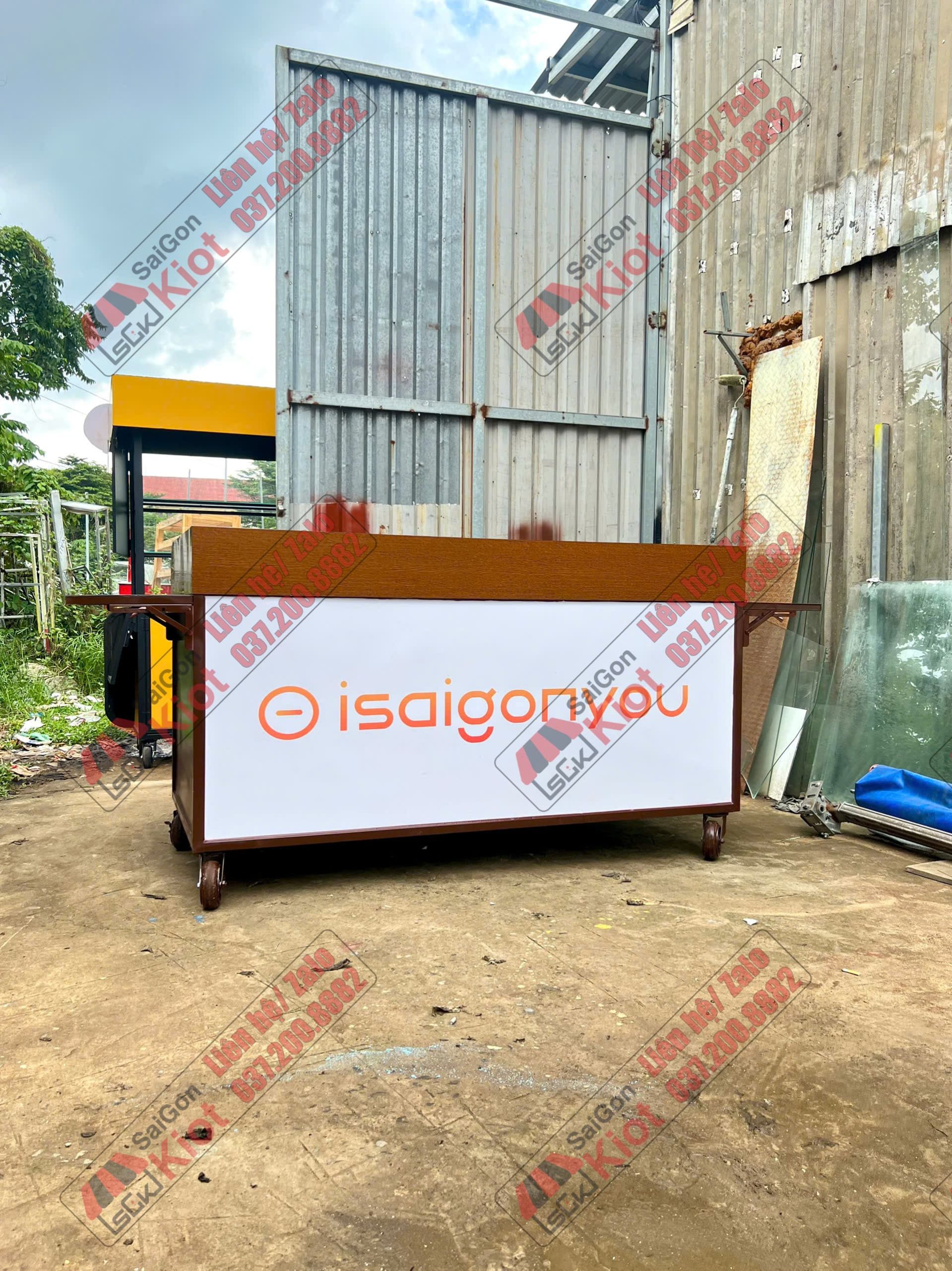 Xe đẩy bán cà phê thiết kế vân gỗ cá tính