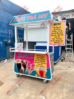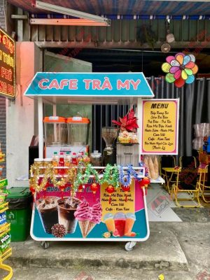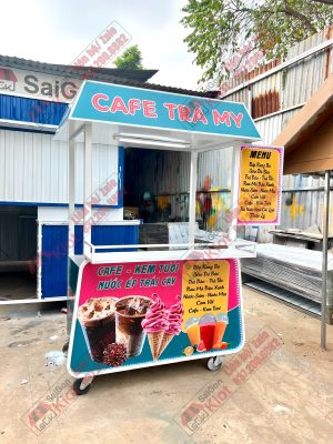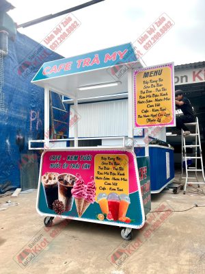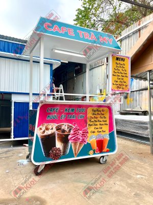 Xe đẩy bán cà phê, kem tưới, nước ép thiết kế nổi bật