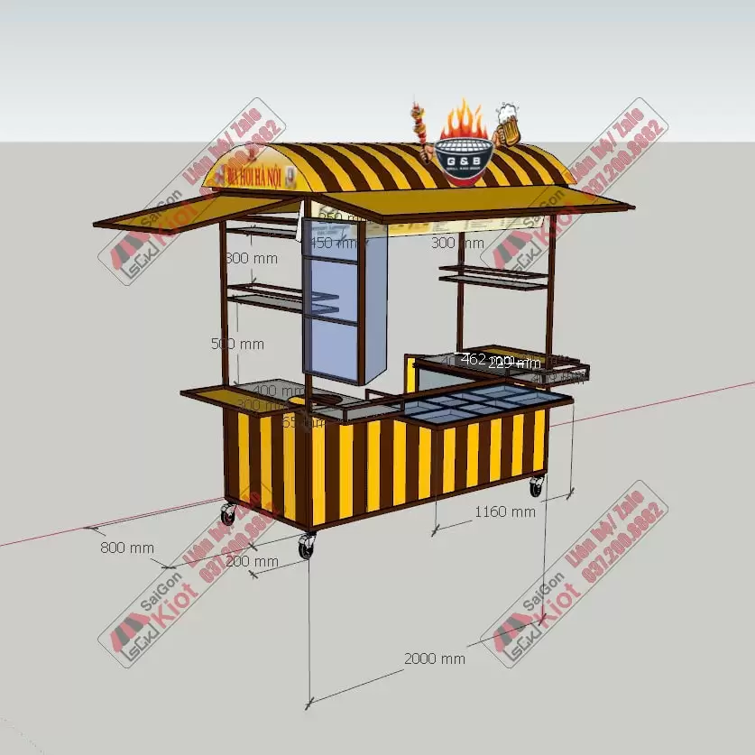 Xe đẩy bán đồ nướng thiết kế độc đáo