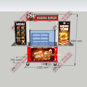 Xe đẩy bán bánh hamburger thiết kế hiện đại
