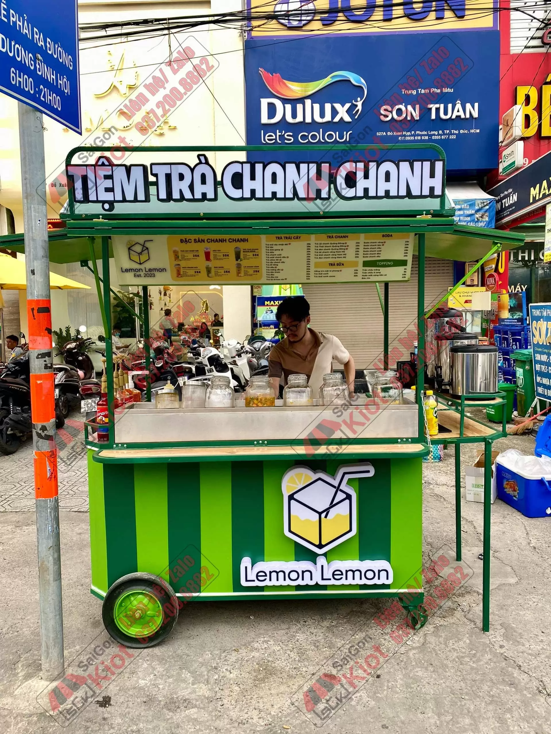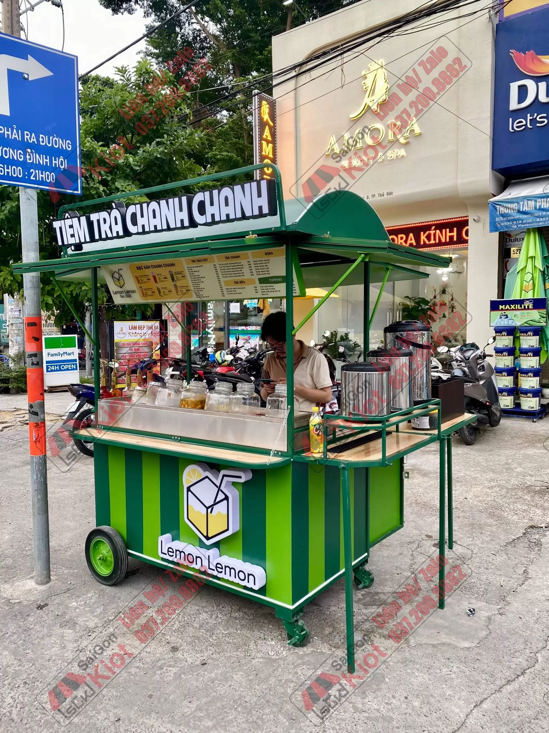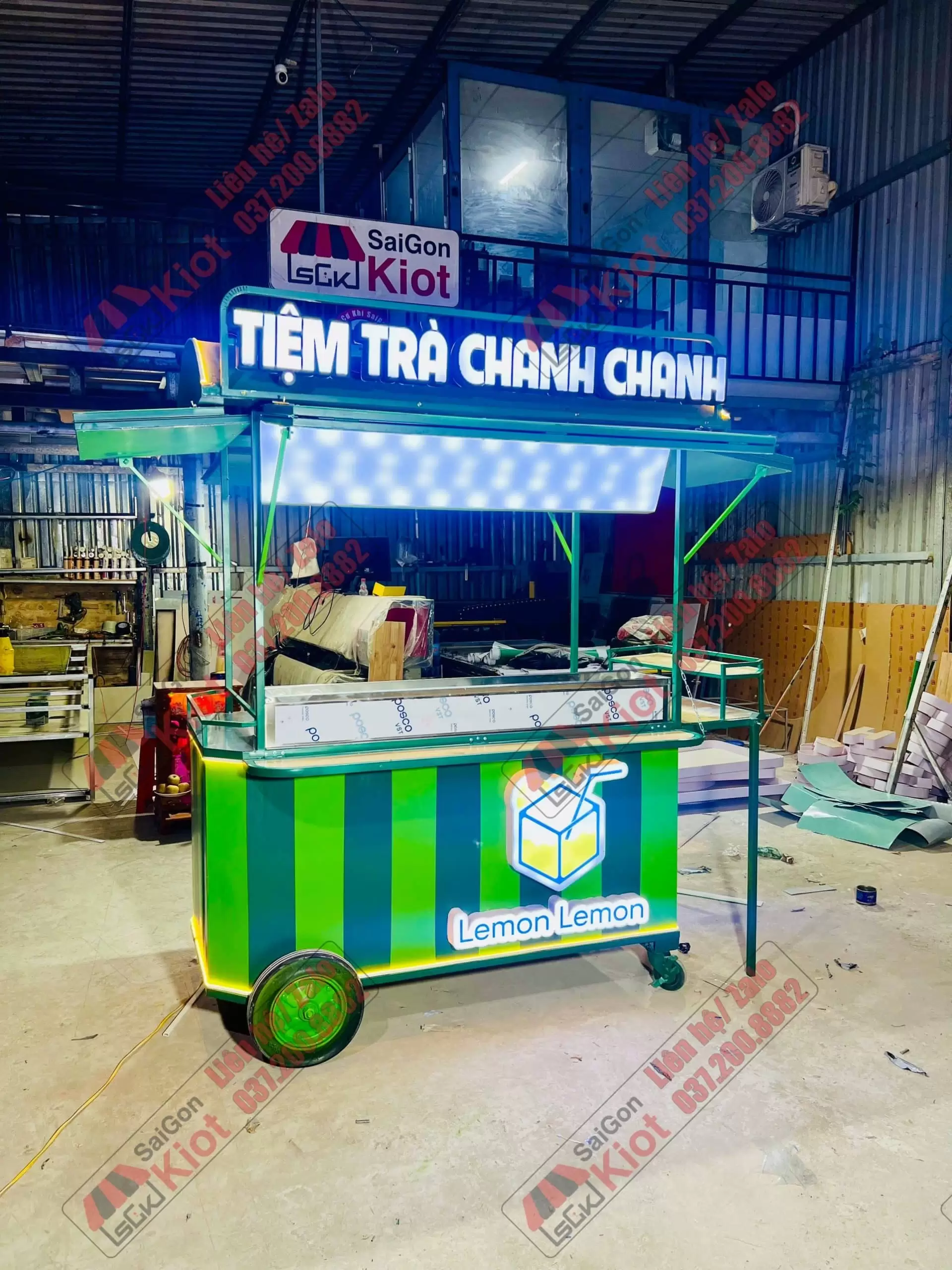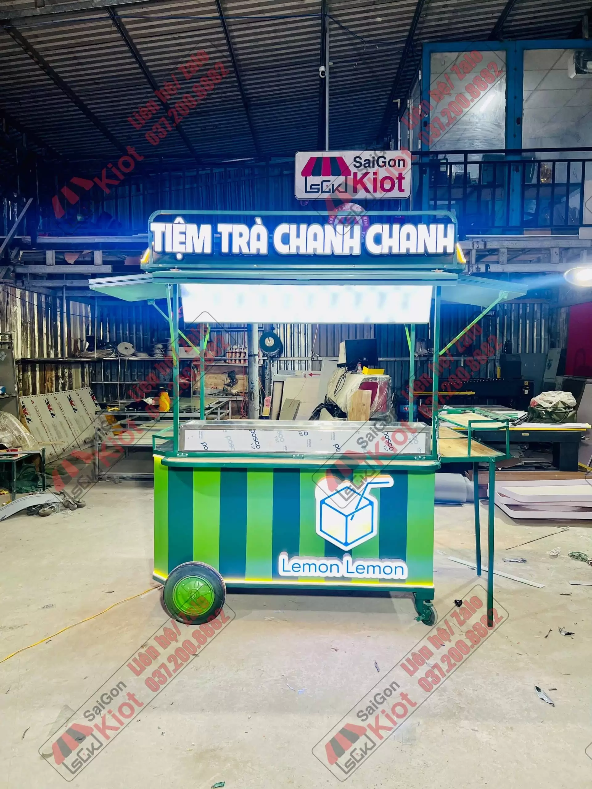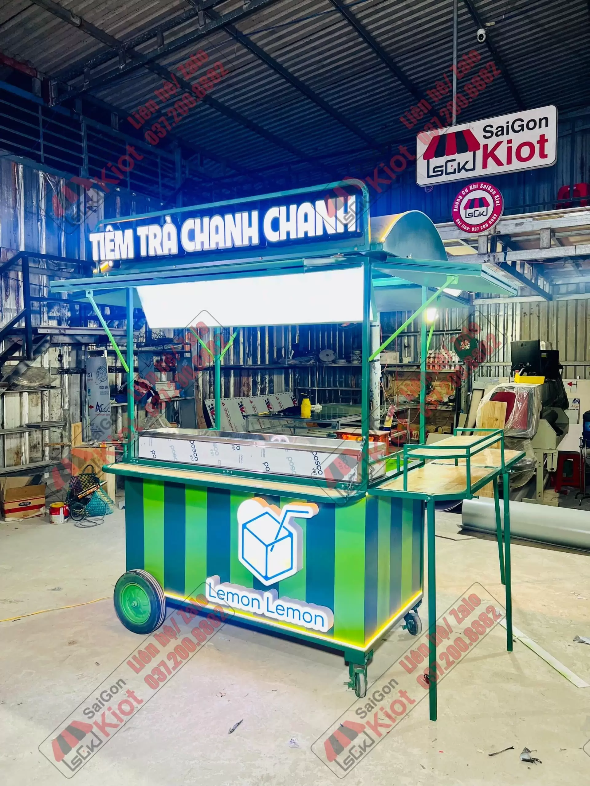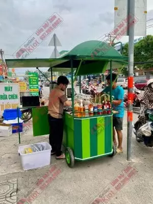 Xe đẩy bán nước phối 2 màu xanh bắt mắt