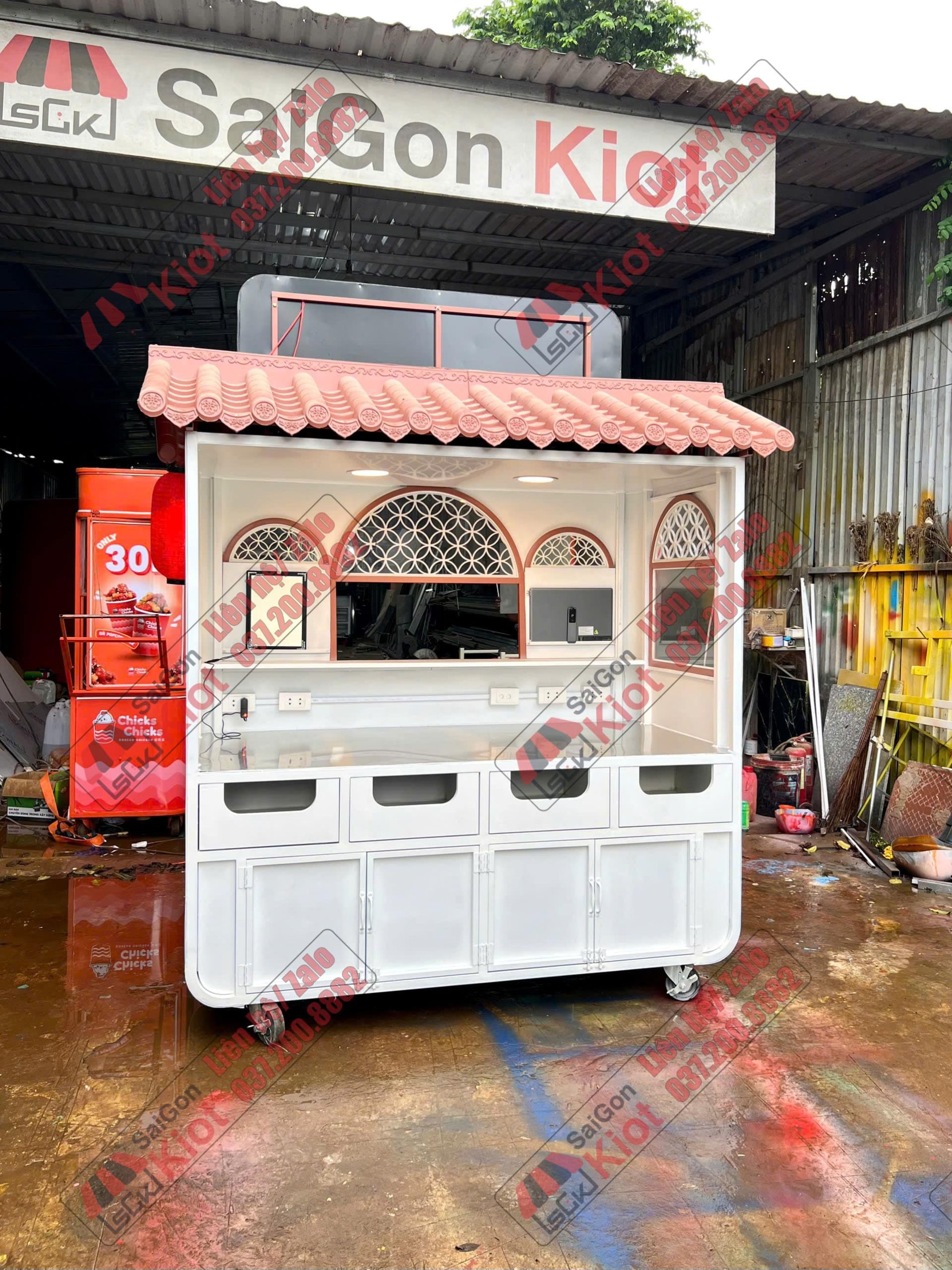 Xe đẩy bán trà sữa phong cách Trung Hoa độc đáo