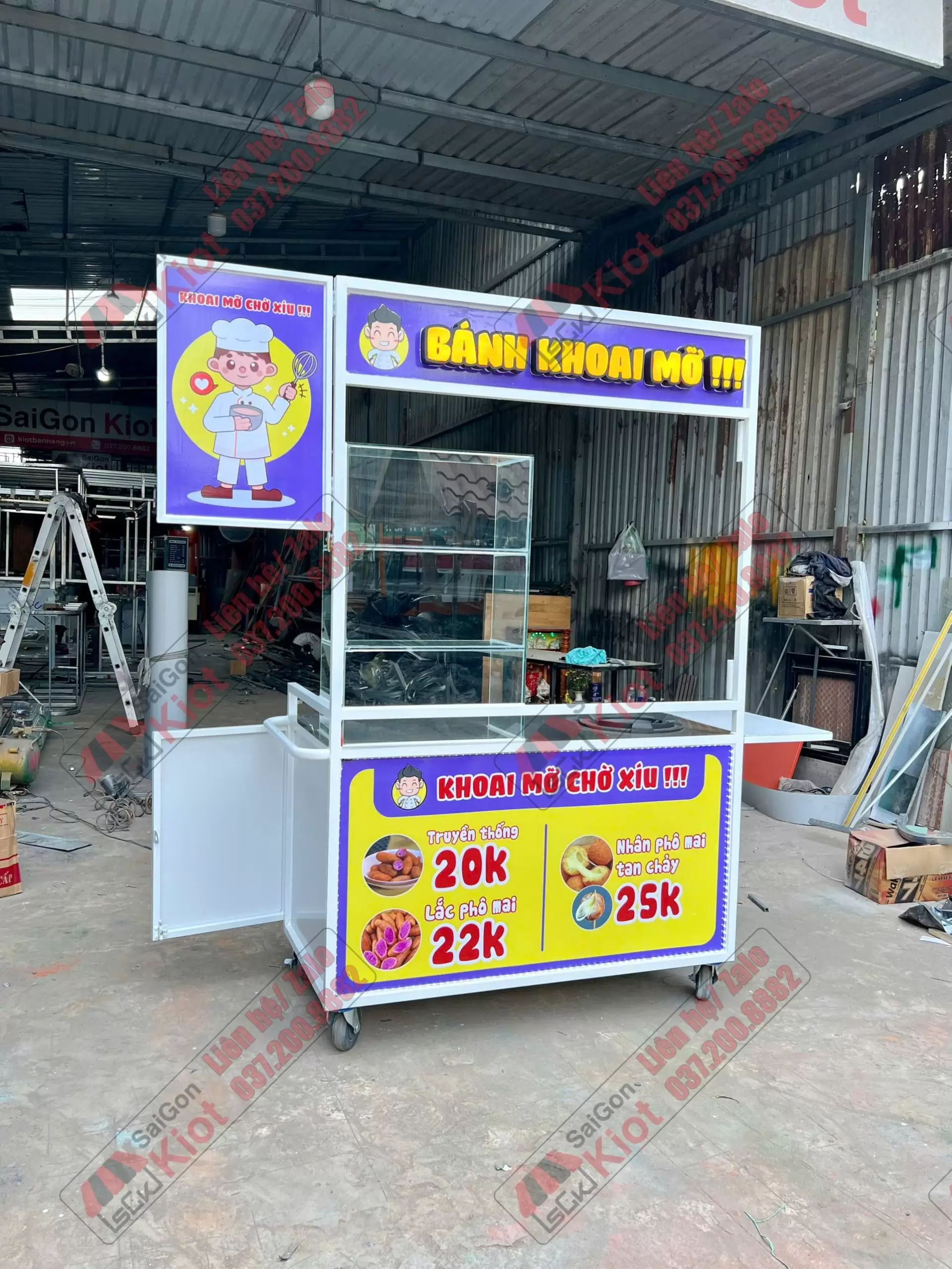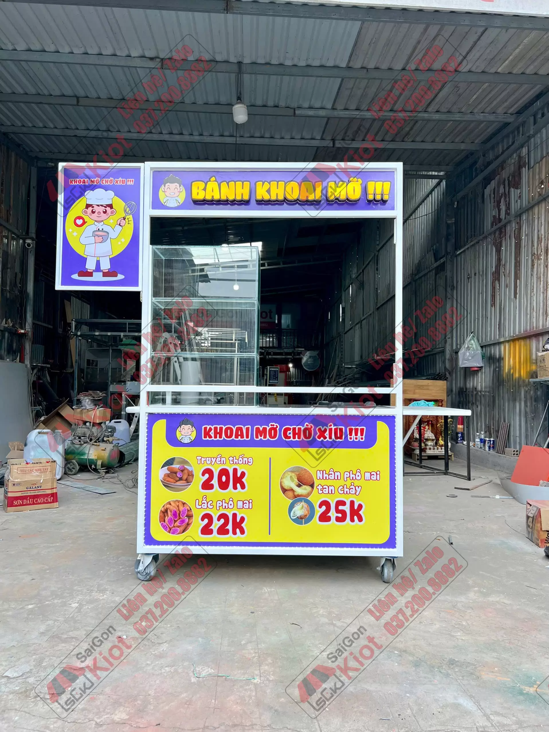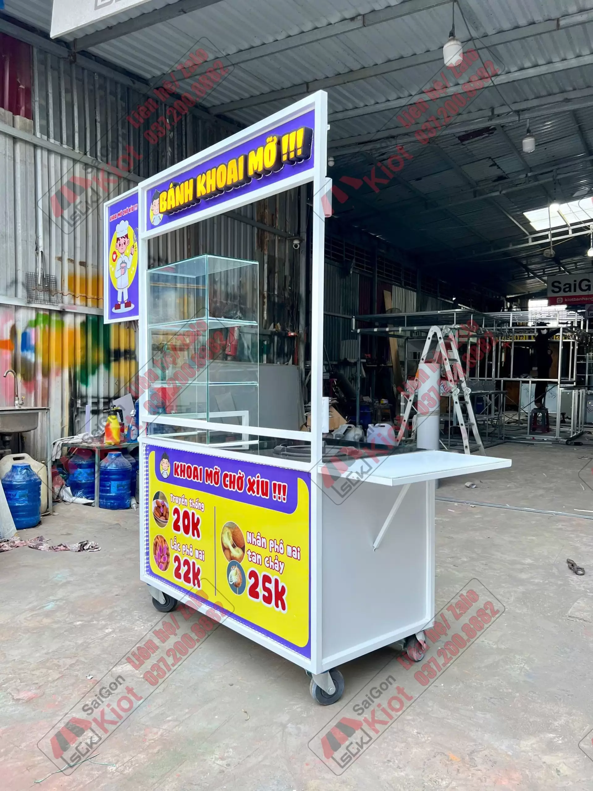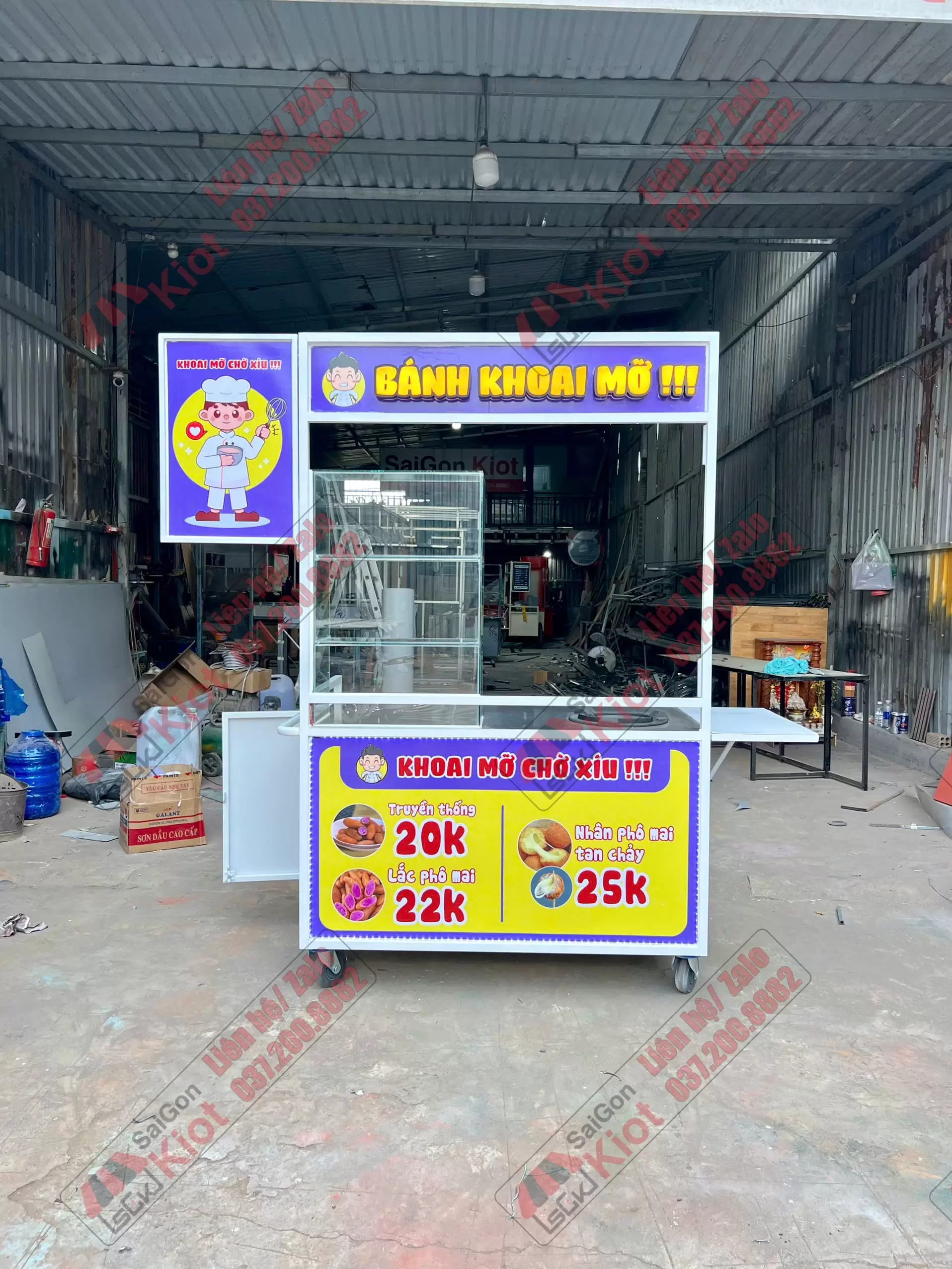 Xe đẩy bán Bánh Khoai Mỡ nổi bật với màu sắc tươi tắn.